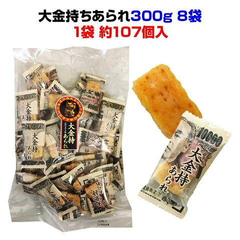 お札あられ・おもしろお菓子*大金持ちあられ300g 8袋(1c/s)*業務用お菓子 個包装 結婚式や業務用販促品 お祭り景品に 大量購入がお得 壱万円札のピロ包装 お金あられ お札お菓子 お札煎餅 個包装お菓子 お金お菓子 一万円札 面白景品 海老マヨネーズ味