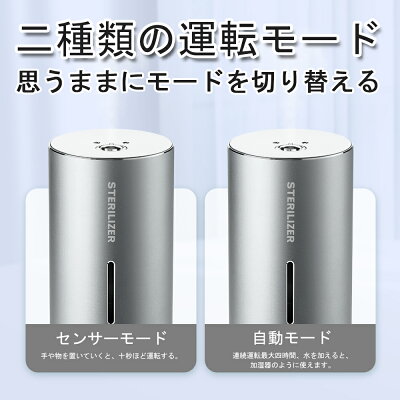 操作スイッチを上に押すと、センサーモードに入り、赤外線センサーで検知し、物を消毒します。