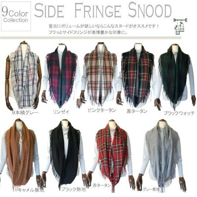 【メール便送料無料・日本製】サイドフリンジスヌード(全8色)スヌード マフラー ネックウオーマー メンズ ボリューム 厚手 秋 冬 保温 タータンチェック チェック 無地 ストール ギフト クリスマス レディース 防寒 リング 贈り物【楽ギフ_包装選択】