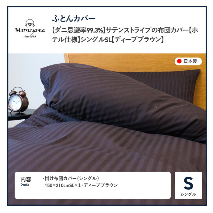 【ふるさと納税】 布団カバー シングル 日本製 綿100% 抗菌 防臭 防ダニ ディープブラウン サテン ストライプ ホテル仕様 掛けカバー 寝具 国産 新生活 衣替え 【ダニ忌避率99.3%】