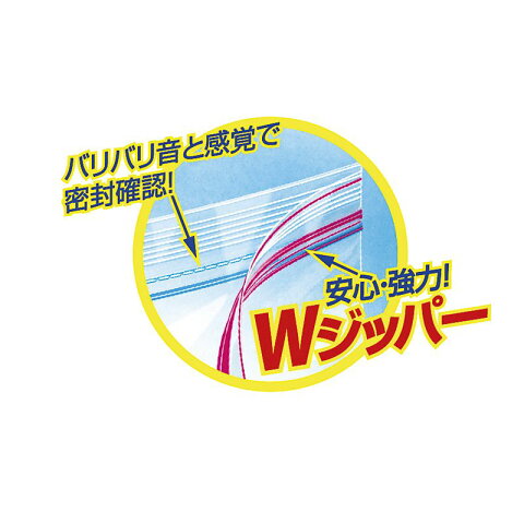 ■マチ付きで立てて保存ができ、冷蔵庫内がスッキリ! ■Wチャックで密封性バツグン!バリバリ音と感覚で密封確認が簡単に出来る! ■レッドとブルーのカラージッパー採用で視認性抜群! ■内容物や保存日が書けるメモスペース付き。