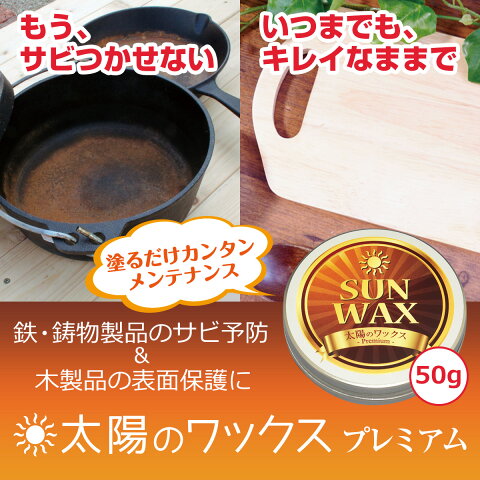 鋳物 鉄製 調理器具のお手入れ メンテナンスグッズ 太陽のワックスプレミアム 50g缶【シーズニング スキレット ダッチオーブン 鉄鍋 日本製 パエリアパン ルクルーゼ ストウブ 錆防止 自然素材 鉄鍋 木製食器 まな板 鉄 保護 ククス アイアン 錆 さび止め 錆防止 Staub 鍋】
