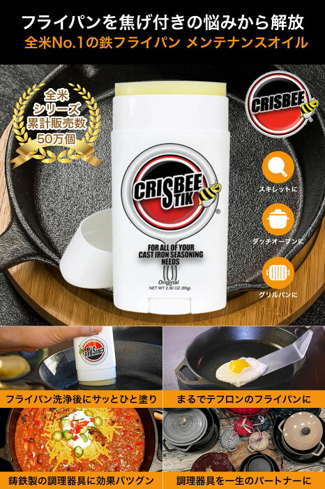 年間売上5万個を超える全米大ヒット商品、Crisbeeがあなたのフライパンを焦げ付きの悩みから解放します!お得な2本セット 【 フライパン洗浄後にサッとひと塗り 】面倒なお手入れとサヨウナラ。