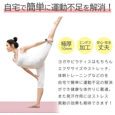 ヨガマット 10mm トレーニングマット ベルト付き NBR ストレッチマット ホノルルフィット ◎ ピラティス 厚手 激安 筋トレ マット エクササイズマット ダイエット 器具 マット ヨガ ストレッチ トレーニング 腹筋 初心者 上級者 ニトリルゴム