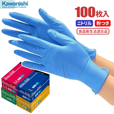 KAWANISHI No.2044 ニトリル極薄手袋 粉付 【ブルー】【100枚入】 油に強くて丈夫なニトリル製使い捨て手袋です。 食品衛生法適合品 粉付きタイプ 使い切り手袋 使い捨て手袋 ディスポ手袋 ニトリル手袋 rev