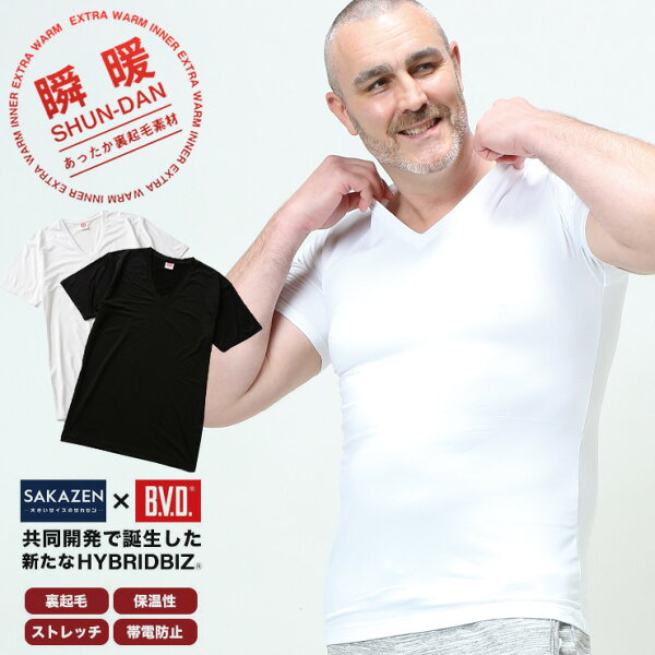 防寒 メンズ肌着 大きいサイズ メンズ 半袖 アンダーTシャツ 裏起毛 Vネック カジュアル アンダーウェア 下着 ストレッチ 暖かい 秋冬 冬 ホワイト/ブラック LLサイズ XL 3L 4L 5L 6L 7L 8L 10L 大きいサイズメンズサカゼンの肌着 寒いシーズンのインナーウェアとしておすすめしたいHYBRIDBIZ×BVDの瞬暖 裏起毛 Vネック 半袖 アンダーTシャツ。