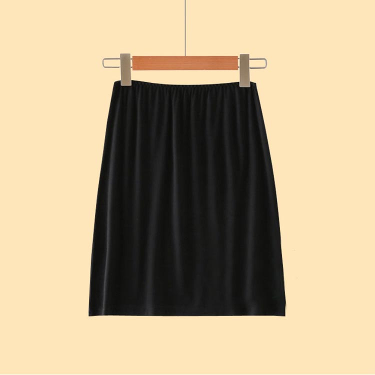 汗ジミや下着の透け・響き、汗による衣類のハリつきなどのお悩みにとろみのあるシルキーな肌ざわりと上品な光沢感が魅力のシンプルペチコート。