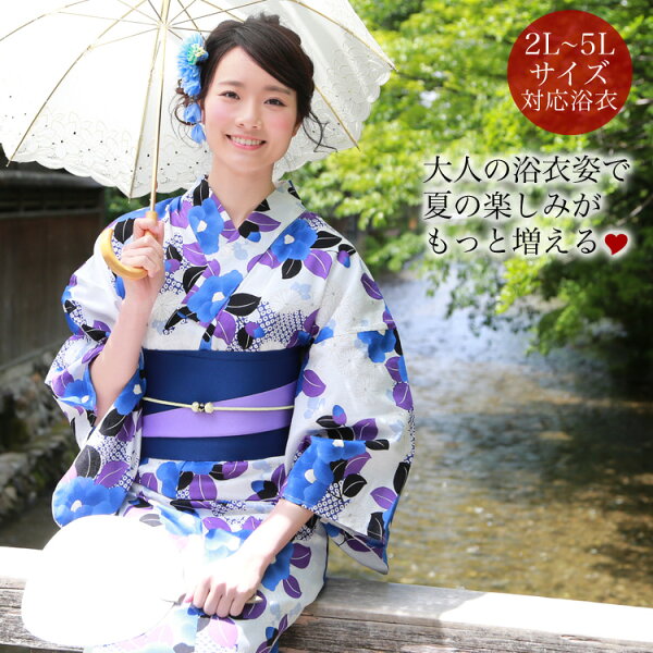 サイズ 身丈 裄丈 前巾 後巾 対応バスト 【2L〜3L】 約164cm 約68cm 約26.5cm 約60cm 93〜108cm 【4L〜5L】 約164cm 約70cm 約28cm 約68cm 107〜122cm 対応身長 (全サイズ共通) 155〜165cm前後 素材 綿100% 備考 ※浴衣の柄の配置はモデル着用とまったく同じではございません。