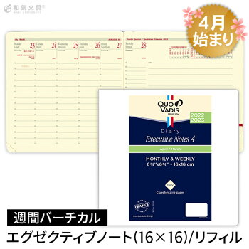 スケジュール帳 【手帳 4月始まり 2022年】クオバディス QUOVADIS 週間 バーチカル(時間軸タテ)16×16cm正方形 エグゼクティブノート4 リフィル(レフィル) メール便送料無料